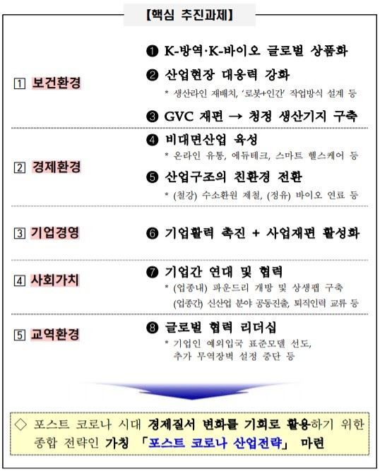 - 포스트 코로나 변화 대응 8대 산업전략을 제시함