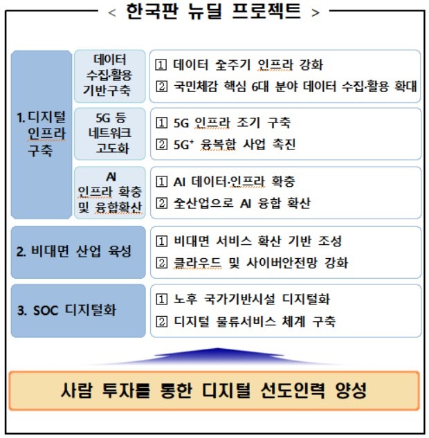 - (1)디지털 인프라 구축, (2)비대면 산업 육성, (3)SOC 디지털화 추진