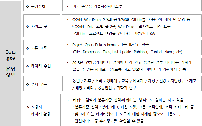< 미국 Data.gov의 운영 정보 >