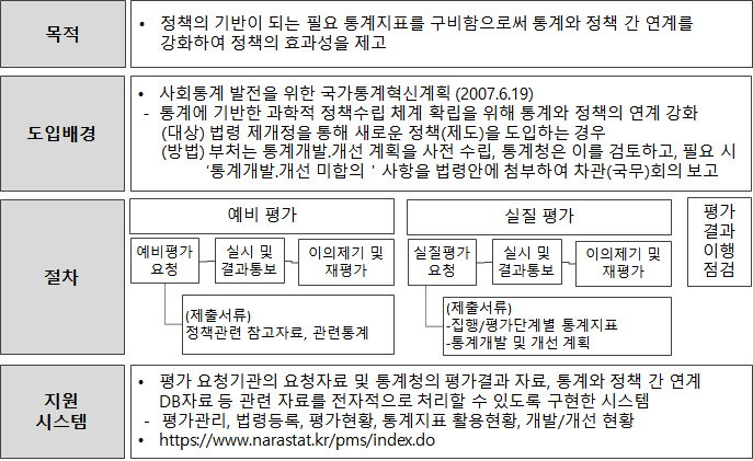 이에 따라, 통계기반정책평가 제도가 운영 중에 있다.