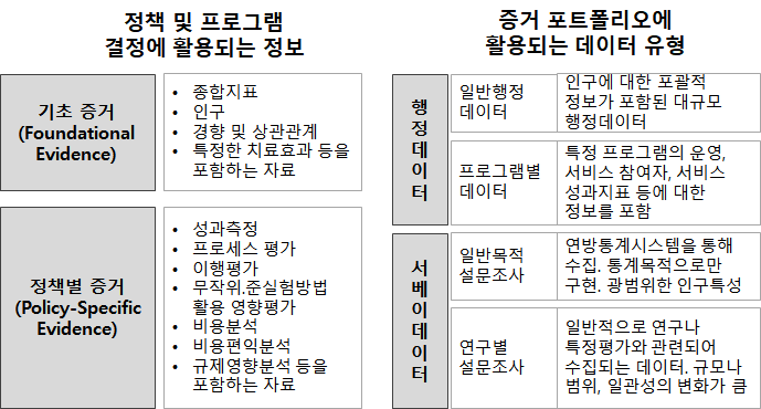 위 데이터를 포함하여 다양한 정보들을 바탕으로 ‘증거기반 정책수립 위원회’는 증거를 구분하여 제공 가능한 데이터 수준을 정의한다.