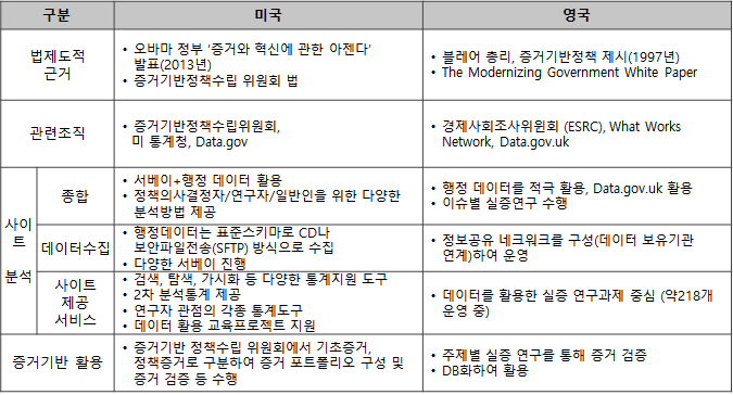< 미국과 영국 증거기반 관련 종합 >